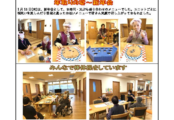 今年の節分は2月3日、昼食に「恵方巻き」を頂き健康を祈念いたしました。 豆まきは2月5日に行いました。 鬼が登場すると「鬼は外~!福は内~!」と紙を丸めた玉を豆に見立て、笑顔で力強く鬼にぶつけていました。最後は福の神が福 […]