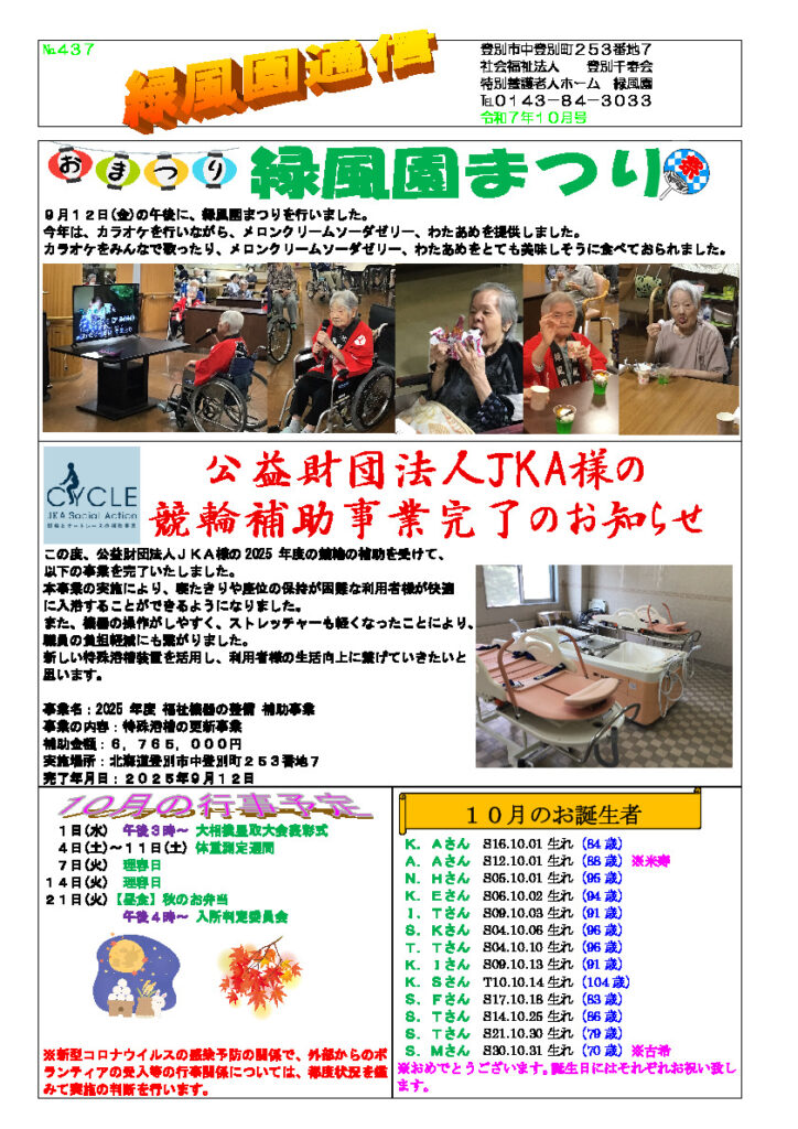 緑風園通信2025年10月