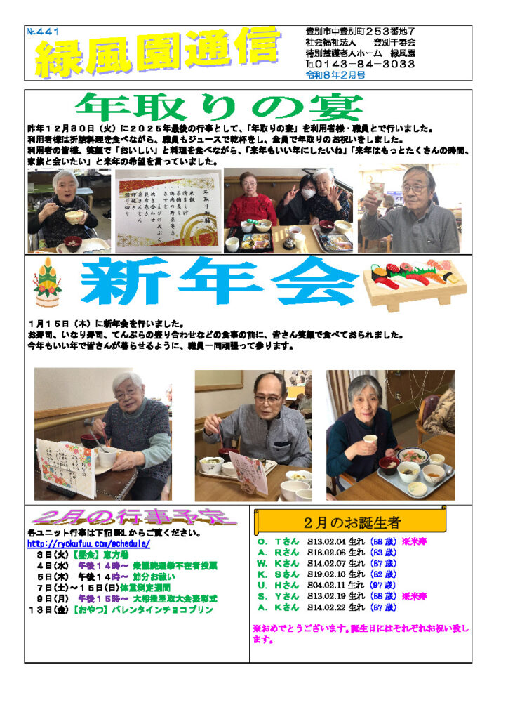 緑風園通信2026年2月