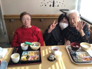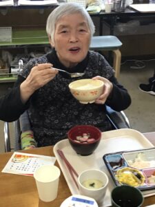 利用者の皆様、笑顔で「おいしい」と料理を食べながら、「来年もいい年にしたいね」「来年はもっとたくさんの時間、家族と会いたい」と来年の希望を言っていました。