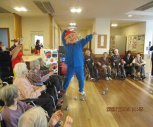 鬼が登場すると「鬼は外~!福は内~!」と紙を丸めた玉を豆に見立て、笑顔で力強く鬼にぶつけていました。最後は福の神が福をもたらしに来てくれました。